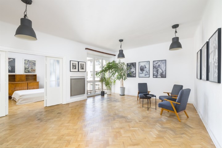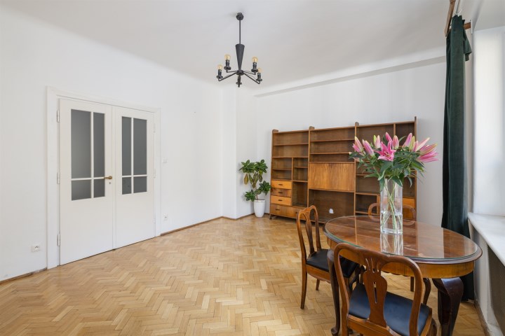 Продается недвижимость, представляющая собой кооперативное право собственности на квартиру, расположенную на третьем этаже жилого дома. Площадь квартиры составляет 99,69 м². В ванных комнатах (есть дополнительный туалет) сохранено напольное покрытие из так называемых варшавских плиток Горсетиков. Окна и двери полностью отреставрированы. Квартира прошла капитальный ремонт в 2016 году, включая снятие штукатурки, замену электрических, водопроводных и отопительных систем, а также реставрацию полов и столярных изделий. Все коммуникации в доме новые (электричество, горячая и холодная вода, канализация, газ). Здание только что получило новый фасад. Продаю напрямую, агентствам спасибо, но нет. Связь после 16:00.