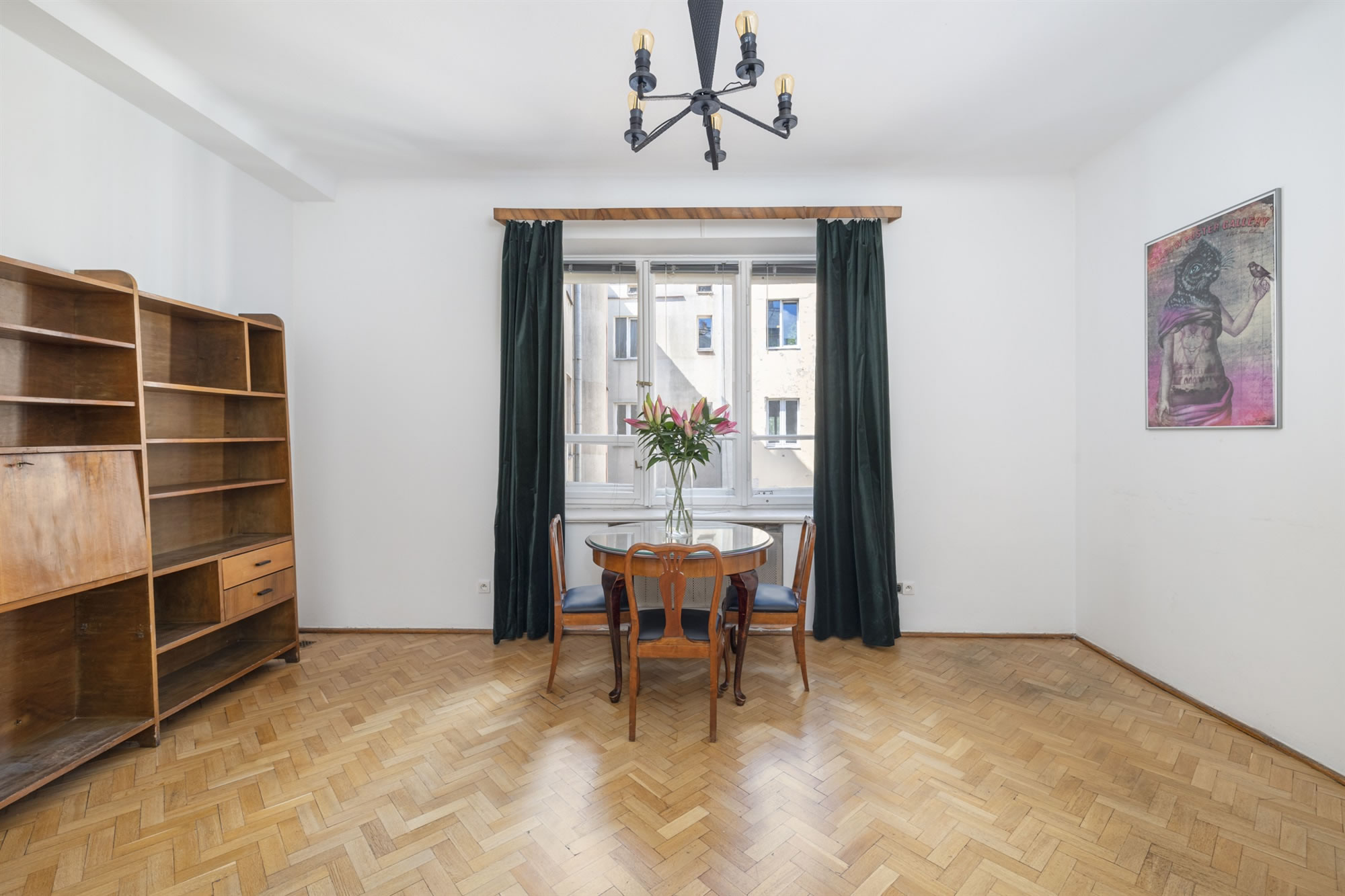 The property for sale is a cooperative ownership right to an apartment located on the third floor of a residential building. The apartment has an area of 99.69 m². The bathrooms (including an additional WC) feature preserved flooring made of so-called Warsaw Gorset tiles. The windows and doors have been fully restored. The apartment underwent a major renovation in 2016, including the removal of plaster, replacement of electrical, plumbing, and heating systems, as well as floor and woodwork restoration. All installations in the tenement building are new (electricity, hot-cold water, sewage, gas). The building has just received a new facade. I am selling directly, no agencies, thank you. Contact after 4 PM.